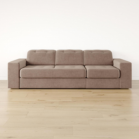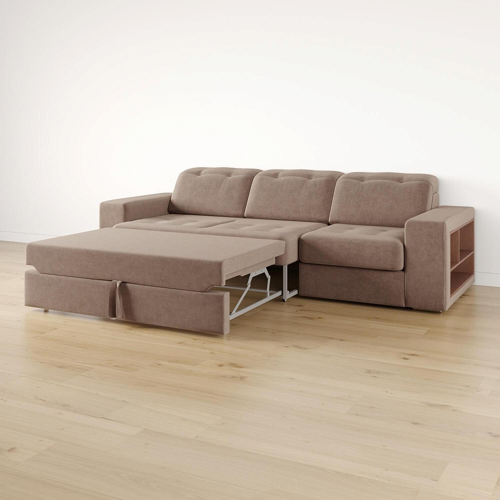 Выкатной механизм трансформации. Диван раскладывается в два движения. Сначала выкатите нижнюю планку до упора, а затем потяните внутреннее сиденье за специальную петлю вверх и на себя. Cиденье поднимется и зафиксируется.