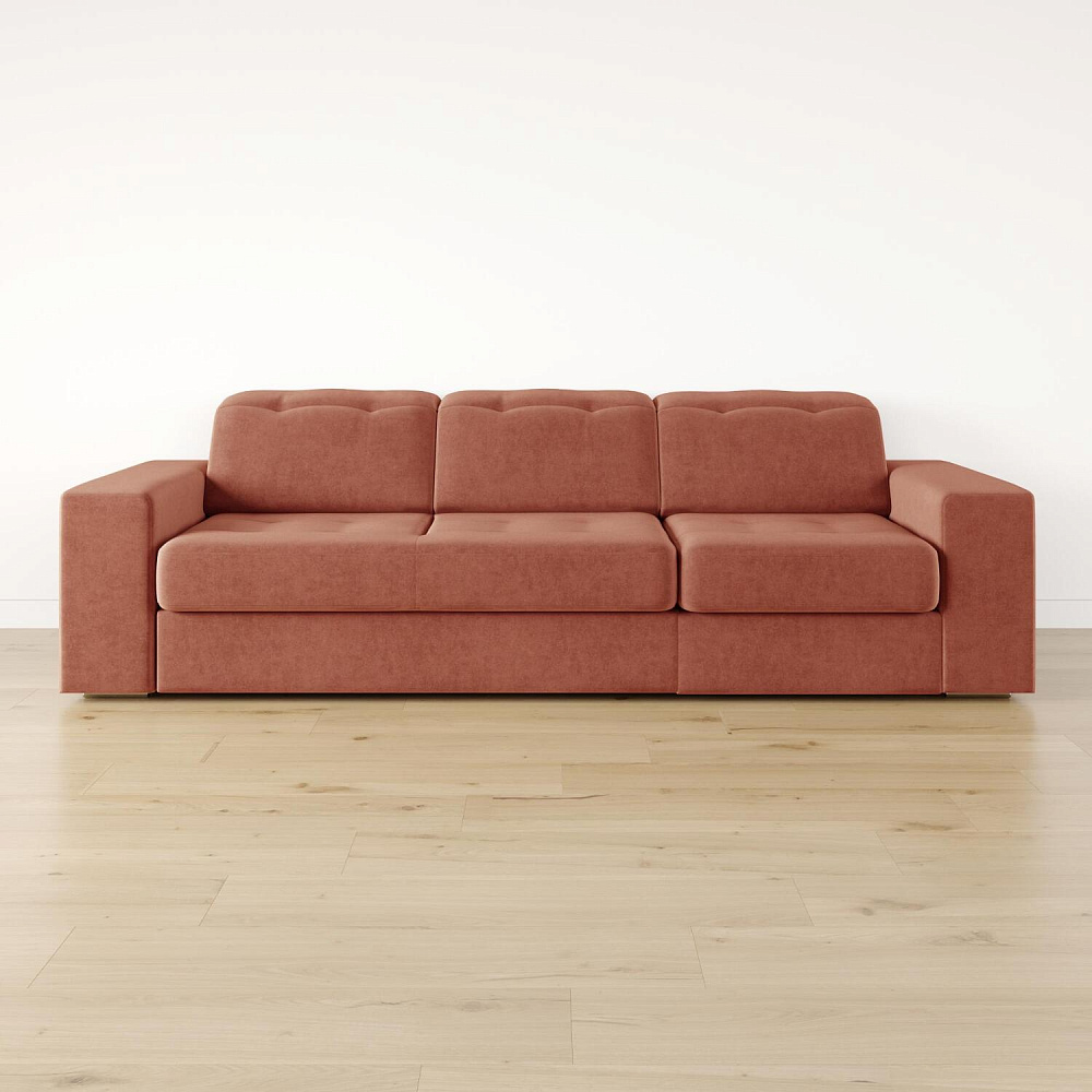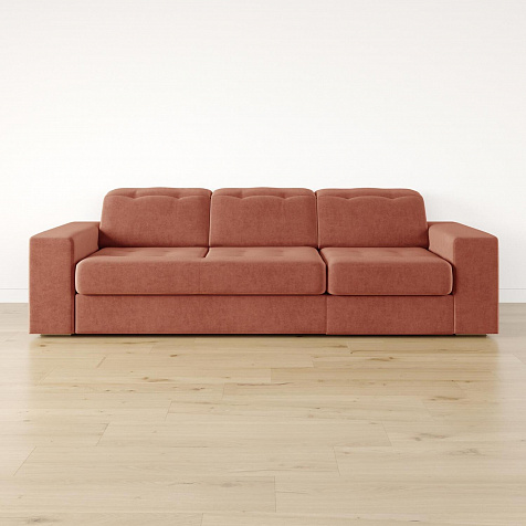 Выкатной механизм трансформации. Диван раскладывается в два движения. Сначала выкатите нижнюю планку до упора, а затем потяните внутреннее сиденье за специальную петлю вверх и на себя. Cиденье поднимется и зафиксируется.