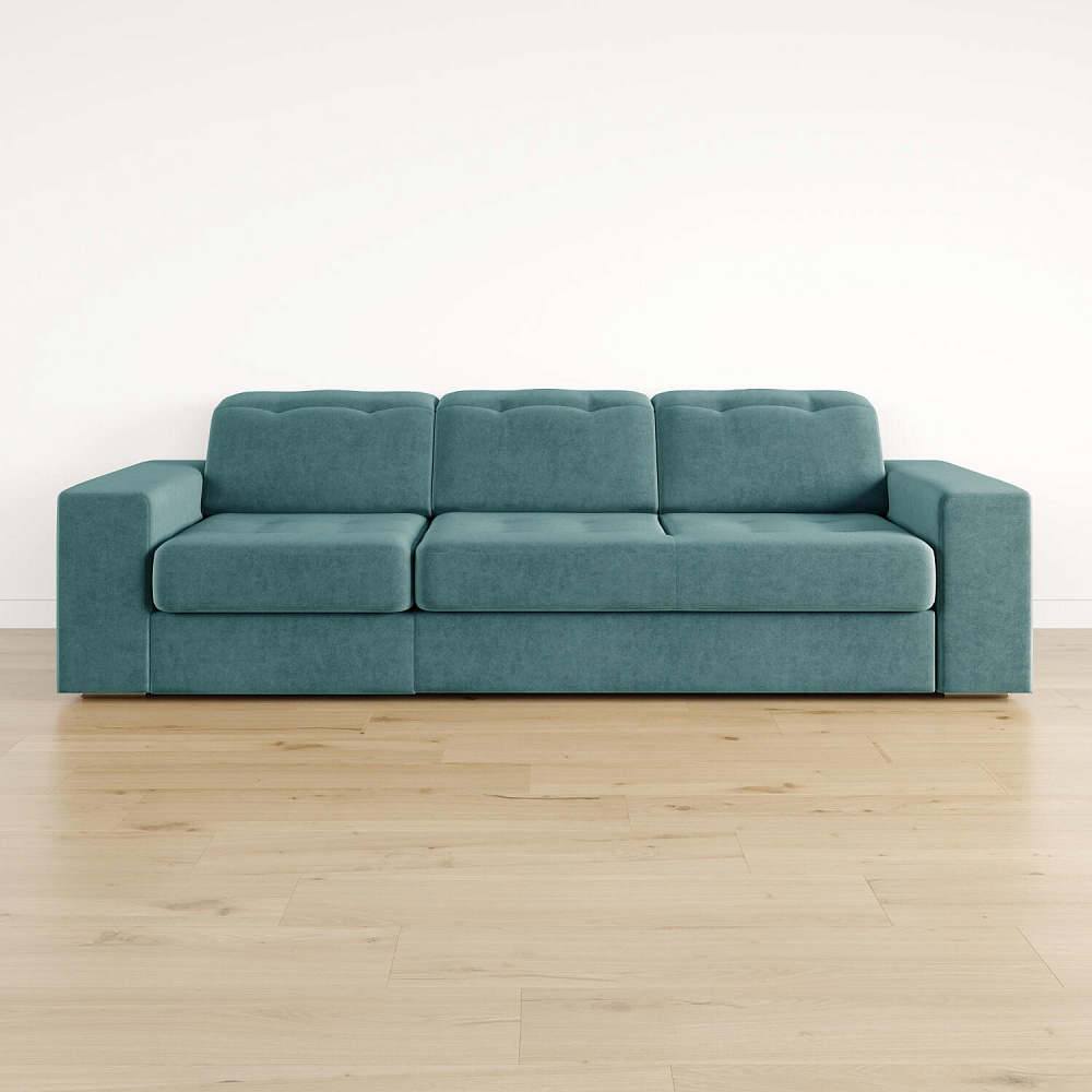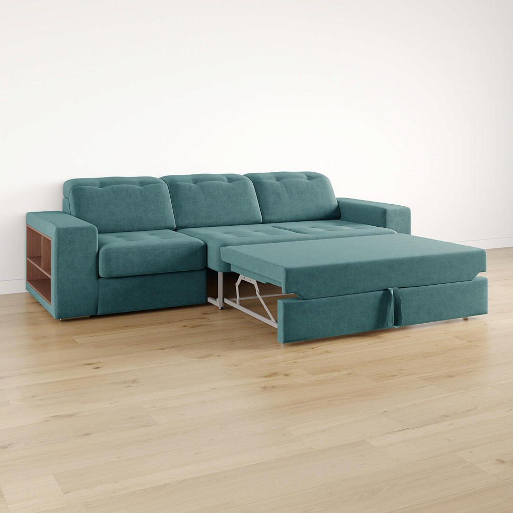 Выкатной механизм трансформации. Диван раскладывается в два движения. Сначала выкатите нижнюю планку до упора, а затем потяните внутреннее сиденье за специальную петлю вверх и на себя. Cиденье поднимется и зафиксируется.
