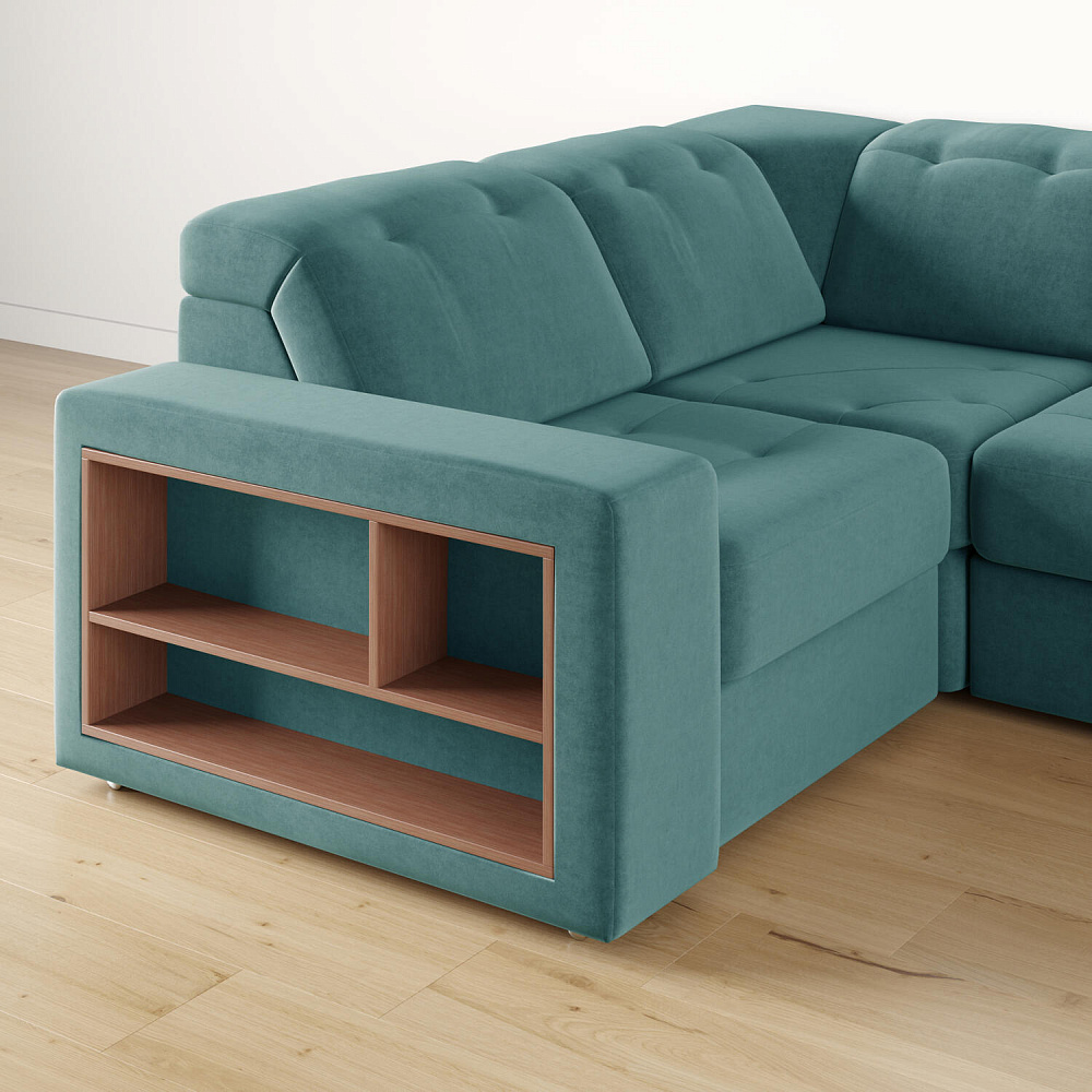Встроенная декоративная полка. В подлокотник слева встроена декоративная полка из ЛДСП.