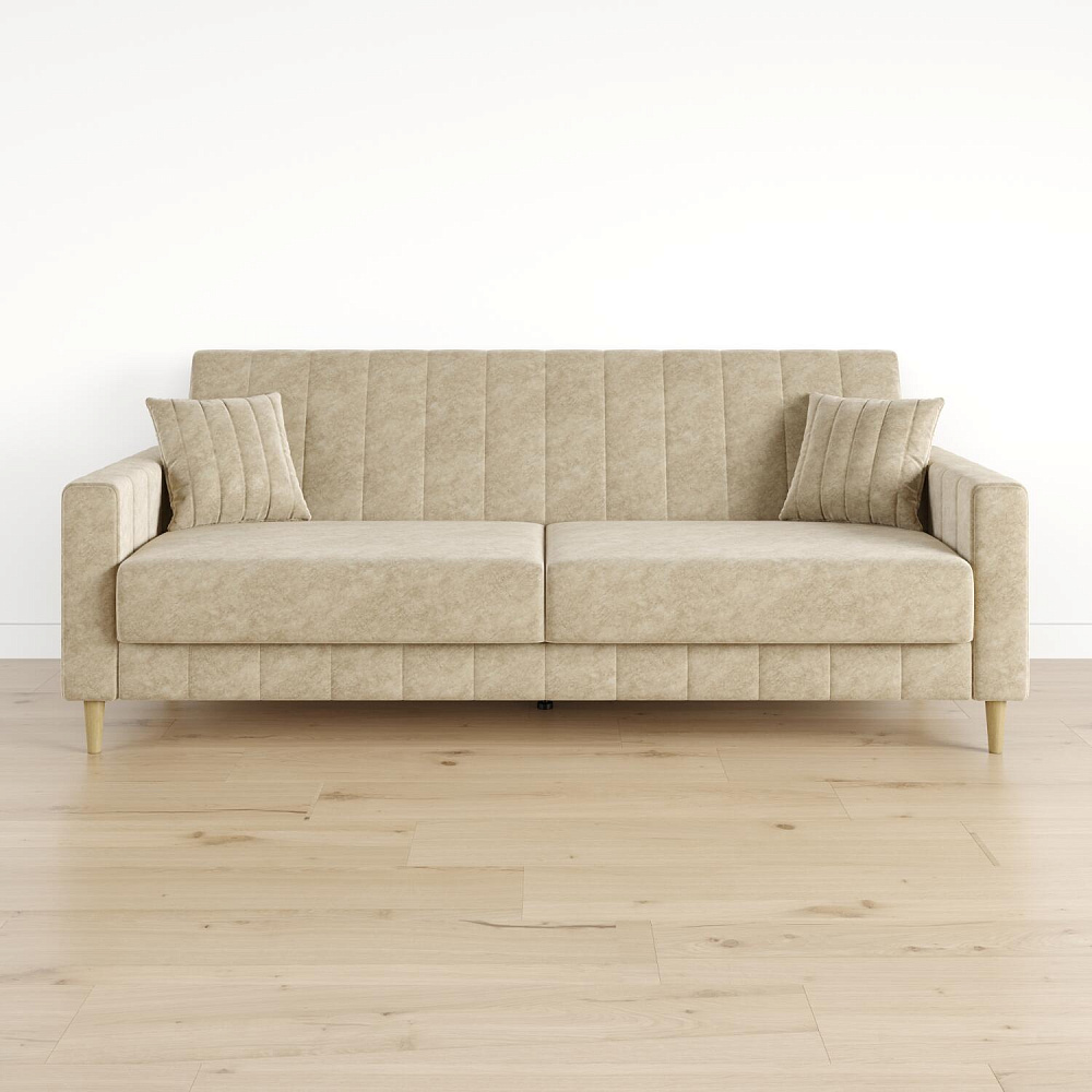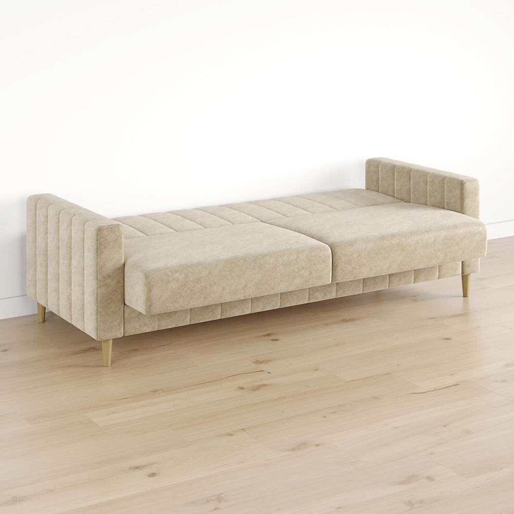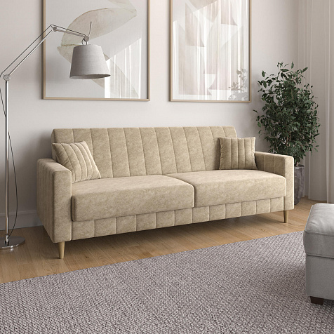 Диван «Бронкс» дополнит гостиную в современном или скандинавском стиле. Модель сочетает в себе минималистичный дизайн, спальное место и ящик для хранения. Задняя часть спинки выполнена в основной обивочной ткани, что дает возможность свободно размещать диван и зонировать комнату. Высокие опоры из натурального дерева создают легкий эффект невесомости и значительно облегчают процесс уборки.