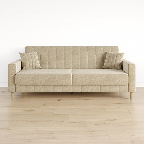 Механизм трансформации «Книжка». Чтобы разложить диван, нужно приподнять спинку и сиденье до щелчка и положить их вниз. Лучше ставить диван на расстоянии от стены, чтобы не двигать его при трансформации.