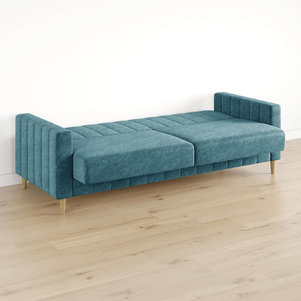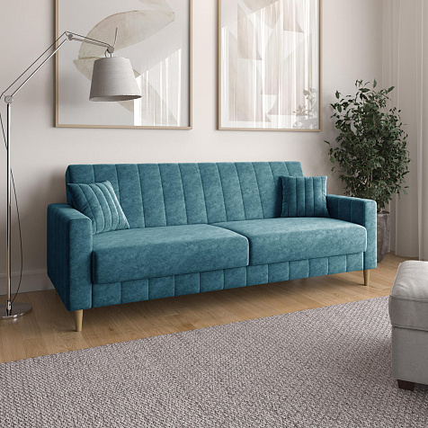 Диван «Бронкс» дополнит гостиную в современном или скандинавском стиле. Модель сочетает в себе минималистичный дизайн, спальное место и ящик для хранения. Задняя часть спинки выполнена в основной обивочной ткани, что дает возможность свободно размещать диван и зонировать комнату. Высокие опоры из натурального дерева создают легкий эффект невесомости и значительно облегчают процесс уборки.