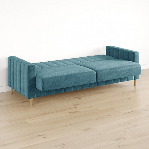 Механизм трансформации «Книжка». Чтобы разложить диван, нужно приподнять спинку и сиденье до щелчка и положить их вниз. Лучше ставить диван на расстоянии от стены, чтобы не двигать его при трансформации.