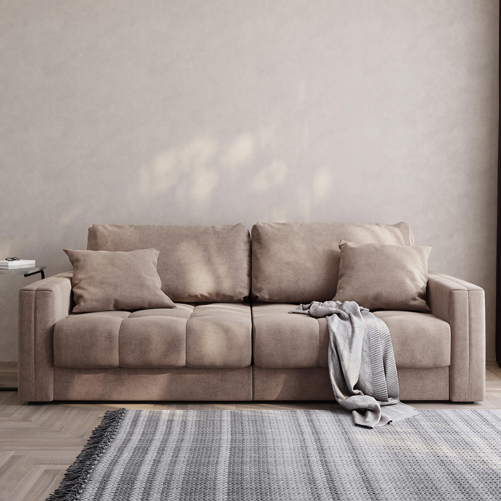 Диван «Дензел» — лучший вариант для ценителей комфорта в сочетании со стильным дизайном. Диван обладает глубокой посадкой, а приспинные и декоративные подушки позволят создать самое удобное место для отдыха. Спинка дивана выполнена в той же обивке, что и основная часть, что даёт возможность использовать диван для зонирования комнаты.