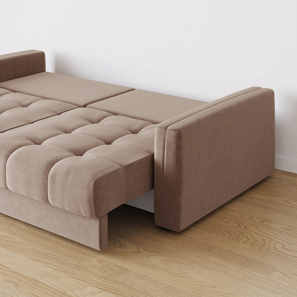 - Бережный механизм трансформации «Тик-Так» двухсекционный. Напольное покрытие останется целым - механизм выталкивает сиденье вверх, которое словно шагает вперёд, не касаясь пола. Трансформация лёгкая - справится даже ребёнок. Половинки дивана раскладываются независимо друг от друга.