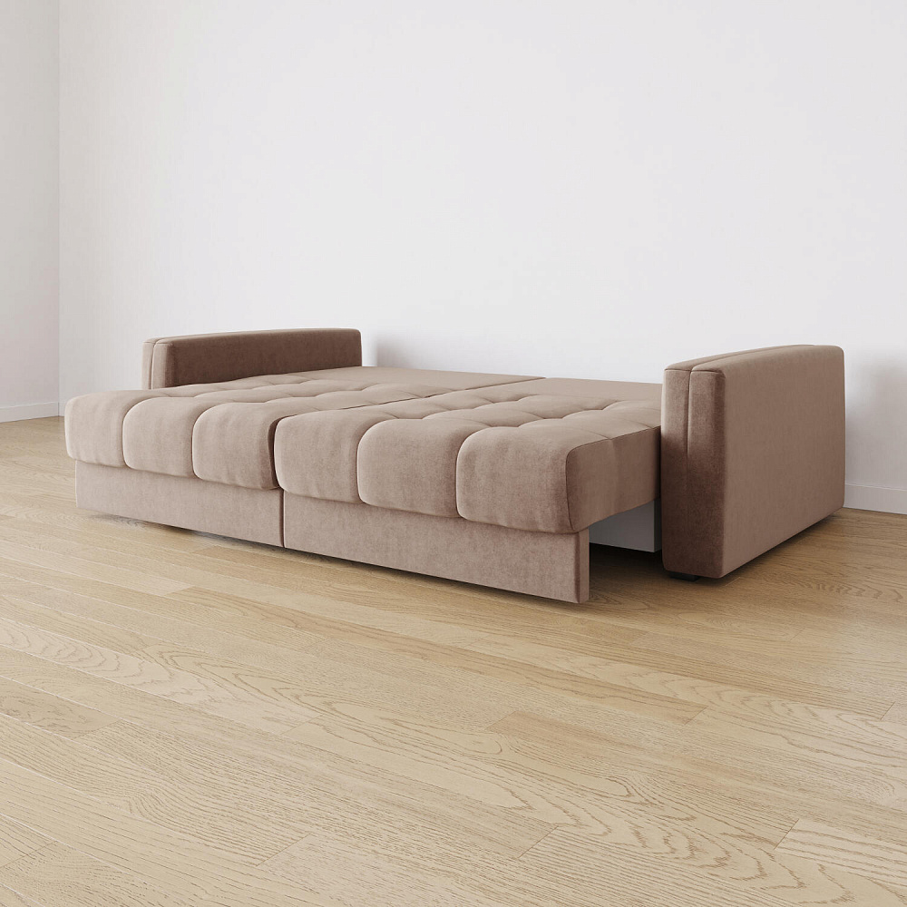 - Размер спального места — 200 х 167 см. Диван легко трансформируется в полноценное двуспальное место.