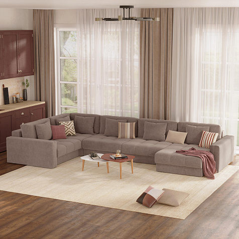 - Два вида подушек. В комплектацию дивана входят шесть приспинных и шесть декоративных подушек, которые позволяют корректировать глубину посадки.