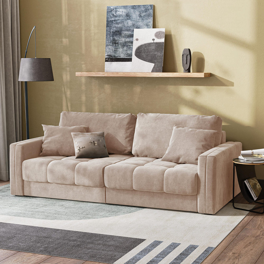Диван «Дензел» — лучший вариант для ценителей комфорта в сочетании со стильным дизайном. Диван обладает глубокой посадкой, а приспинные и декоративные подушки позволят создать самое удобное место для отдыха. Спинка дивана выполнена в той же обивке, что и основная часть, что даёт возможность использовать диван для зонирования комнаты.