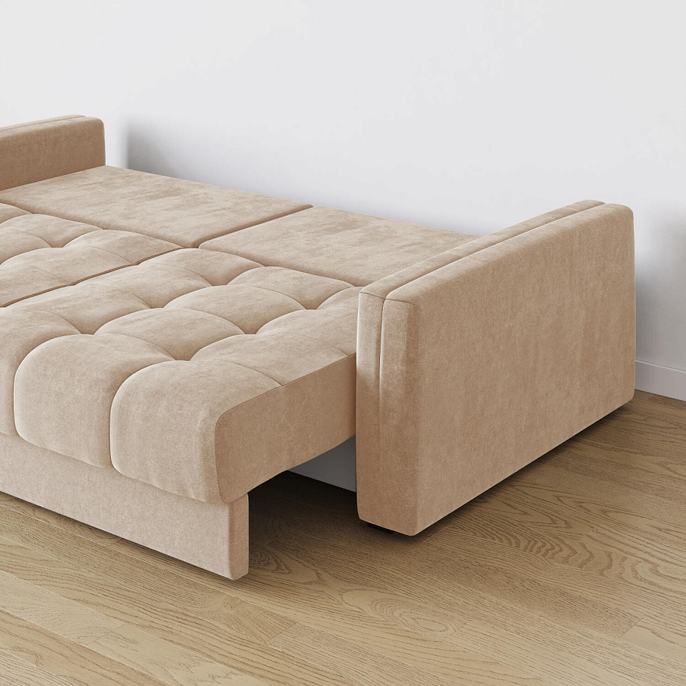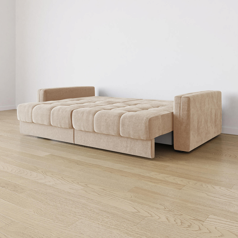 - Бережный механизм трансформации «Тик-Так» двухсекционный. Напольное покрытие останется целым - механизм выталкивает сиденье вверх, которое словно шагает вперёд, не касаясь пола. Трансформация лёгкая - справится даже ребёнок. Половинки дивана раскладываются независимо друг от друга.