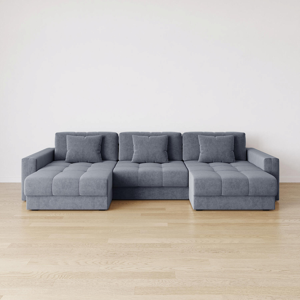П-образный угловой диван «Дензел» — лучший вариант для ценителей комфорта и удобства в сочетании со стильным дизайном. Диван обладает глубокой посадкой, а приспинные и декоративные подушки позволят создать удобное место для отдыха. Угловая модель с двумя оттоманками займёт своё идеальное место в пространстве комнаты или студии. Спинка модели выполнена в обивочной ткани, что даёт возможность использовать диван для зонирования комнаты.