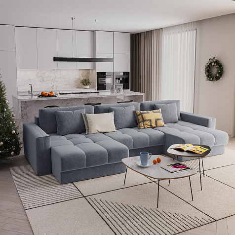 - Размер спального места — 300 х 147 см. Диван легко трансформируется в широкое спальное место для комфортного сна и отдыха двух человек.