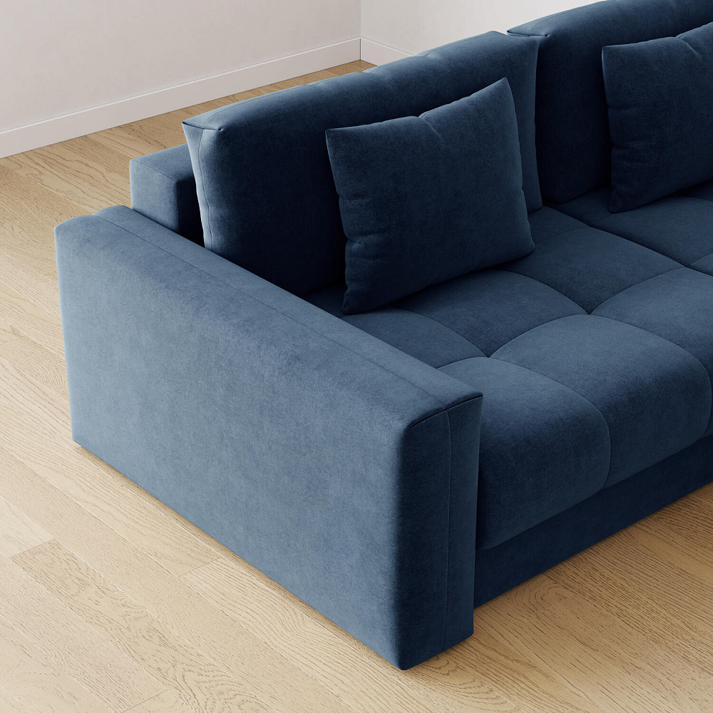 Диван «Дензел» — лучший вариант для ценителей комфорта в сочетании со стильным дизайном. Диван обладает глубокой посадкой, а приспинные и декоративные подушки позволят создать самое удобное место для отдыха. Спинка дивана выполнена в той же обивке, что и основная часть, что даёт возможность использовать диван для зонирования комнаты.