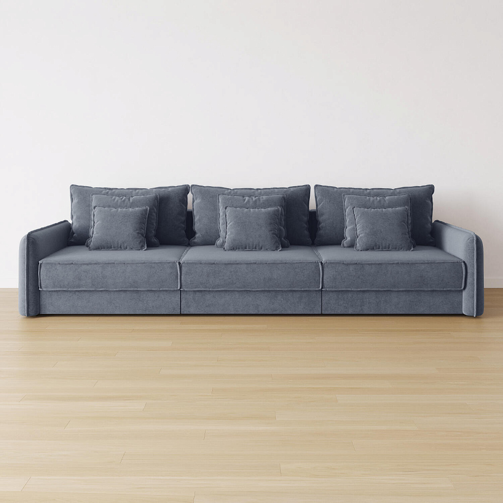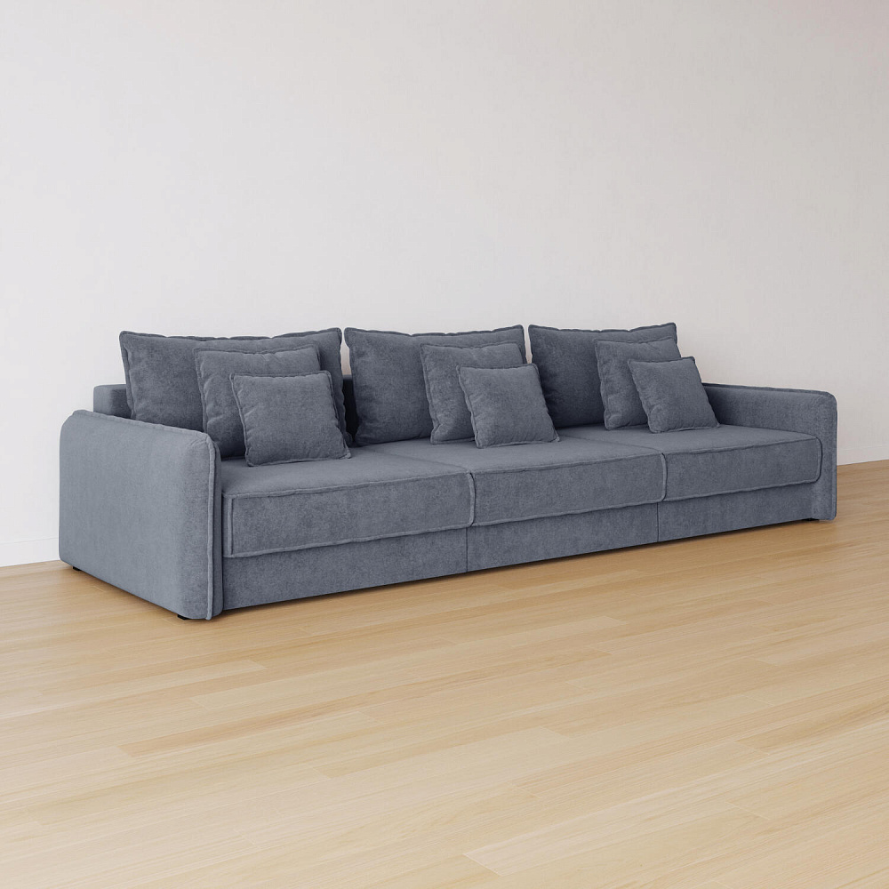 - Девять подушек в комплекте. 3 приспинных и 6 декоративных подушек разных размеров позволят скорректировать глубину посадки.