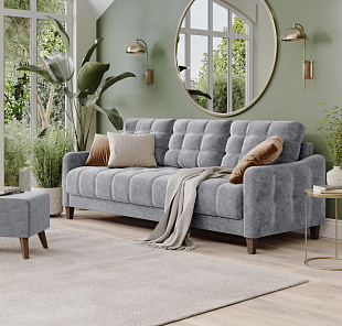 - Механизм трансформации «Тик-Так» секционный. Секции дивана раскладываются независимо друг от друга. Напольное покрытие останется целым — механизм выталкивает сиденье вверх, которое словно шагает вперёд, не касаясь пола.
