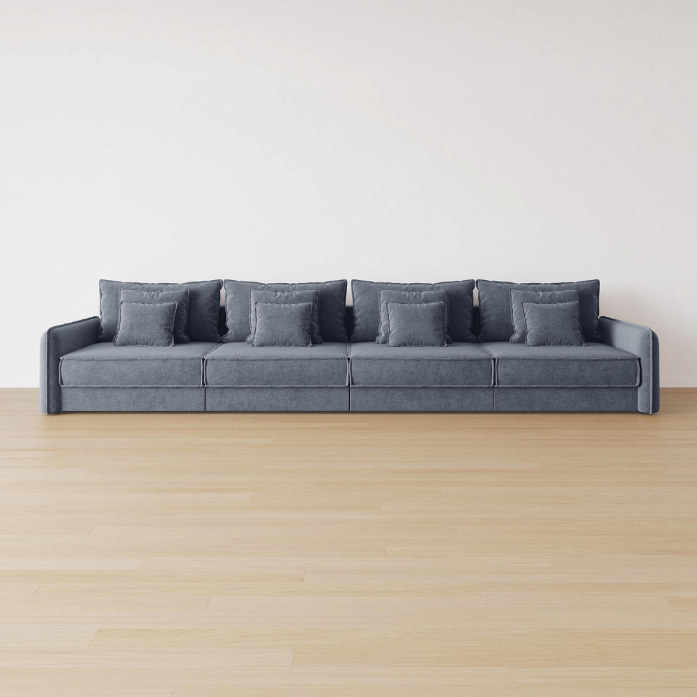 - 12 подушек в комплекте. 4 приспинных и 8 декоративных подушек разных размеров позволят скорректировать глубину посадки.