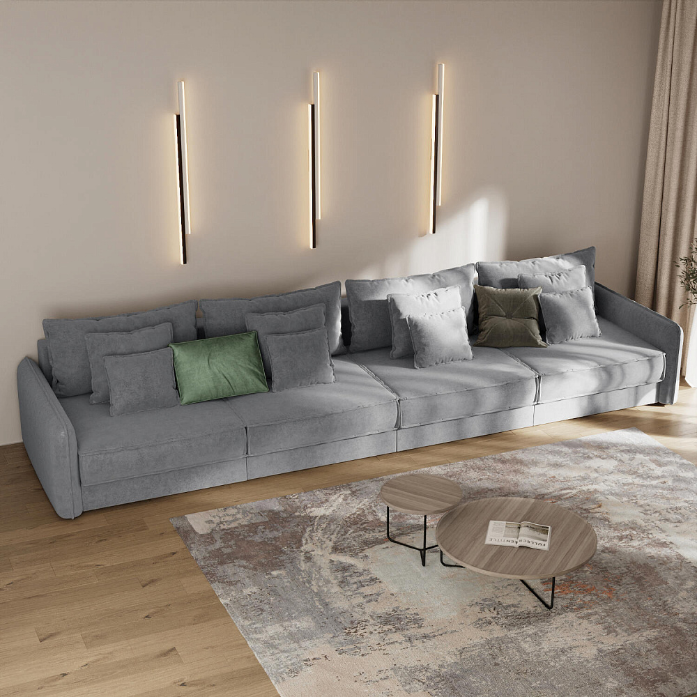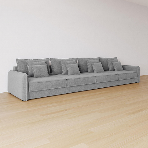 - 12 подушек в комплекте. 4 приспинных и 8 декоративных подушек разных размеров позволят скорректировать глубину посадки.
