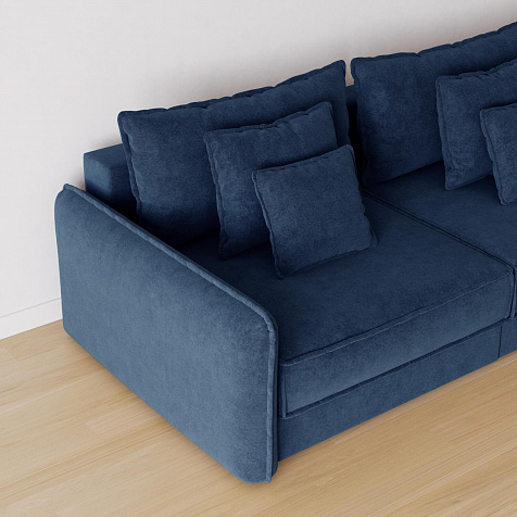 - 15 подушек в комплекте. 5 приспинных и 10 декоративных подушек разных размеров позволят скорректировать глубину посадки.