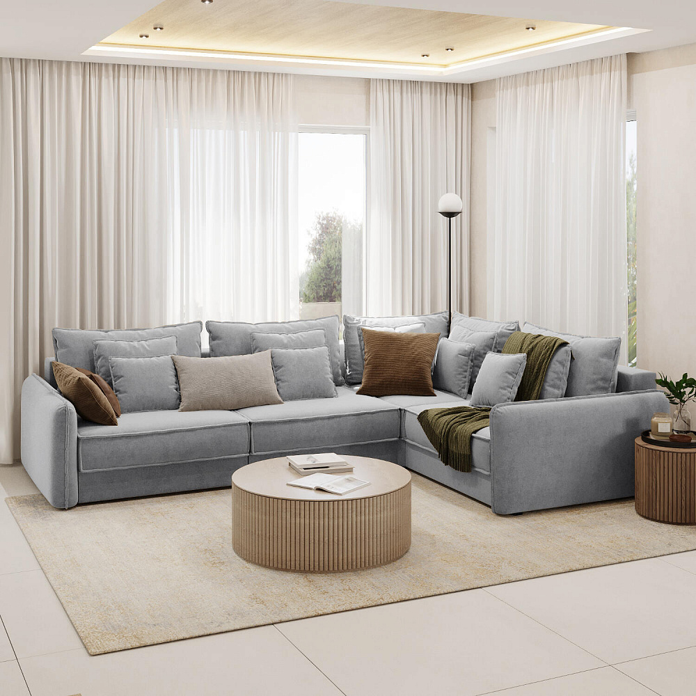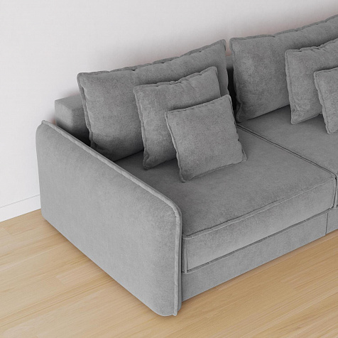 - 15 подушек в комплекте. 5 приспинных и 10 декоративных подушек разных размеров позволят скорректировать глубину посадки.