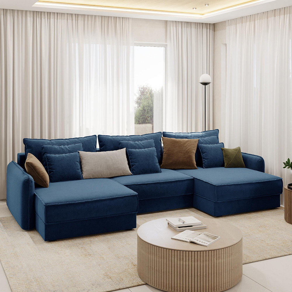 - Размер спального места — 300 х 147 см. Диван легко трансформируется в полноценное спальное место для сна и отдыха двух человек.