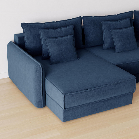 - 9 подушек в комплекте. 3 приспинных и 6 декоративных подушек разных размеров позволят скорректировать глубину посадки.