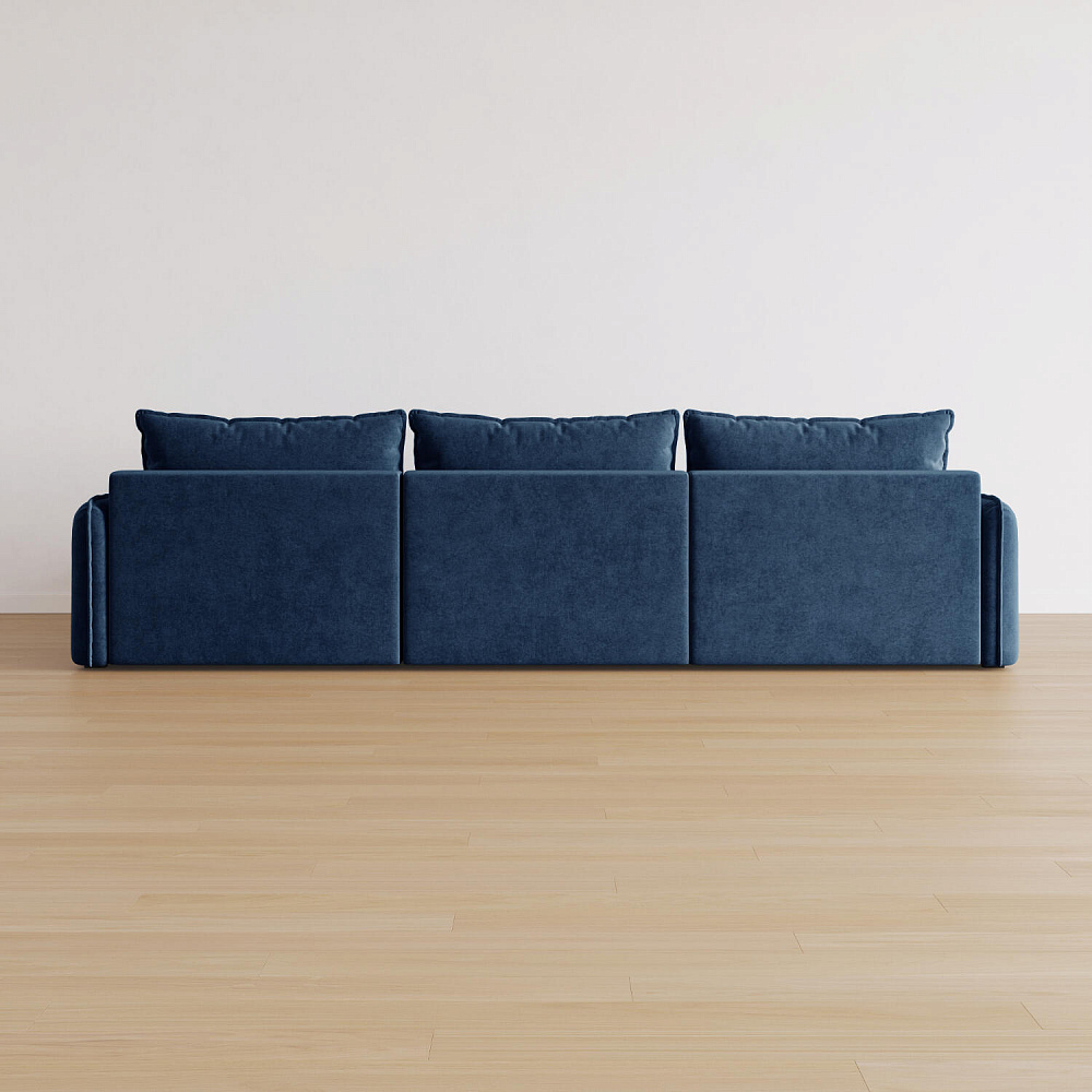 Глубина оттоманки: с подушками — 107 см, без подушек — 148 см.