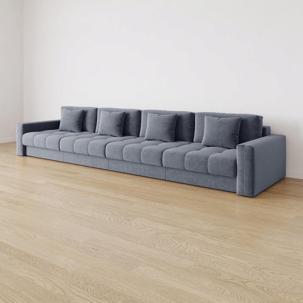 Диван «Дензел» — лучший вариант для ценителей комфорта в сочетании со стильным дизайном. Диван обладает глубокой посадкой, а приспинные и декоративные подушки позволят создать самое удобное место для отдыха. Спинка дивана выполнена в той же обивке, что и основная часть, что даёт возможность использовать диван для зонирования комнаты.