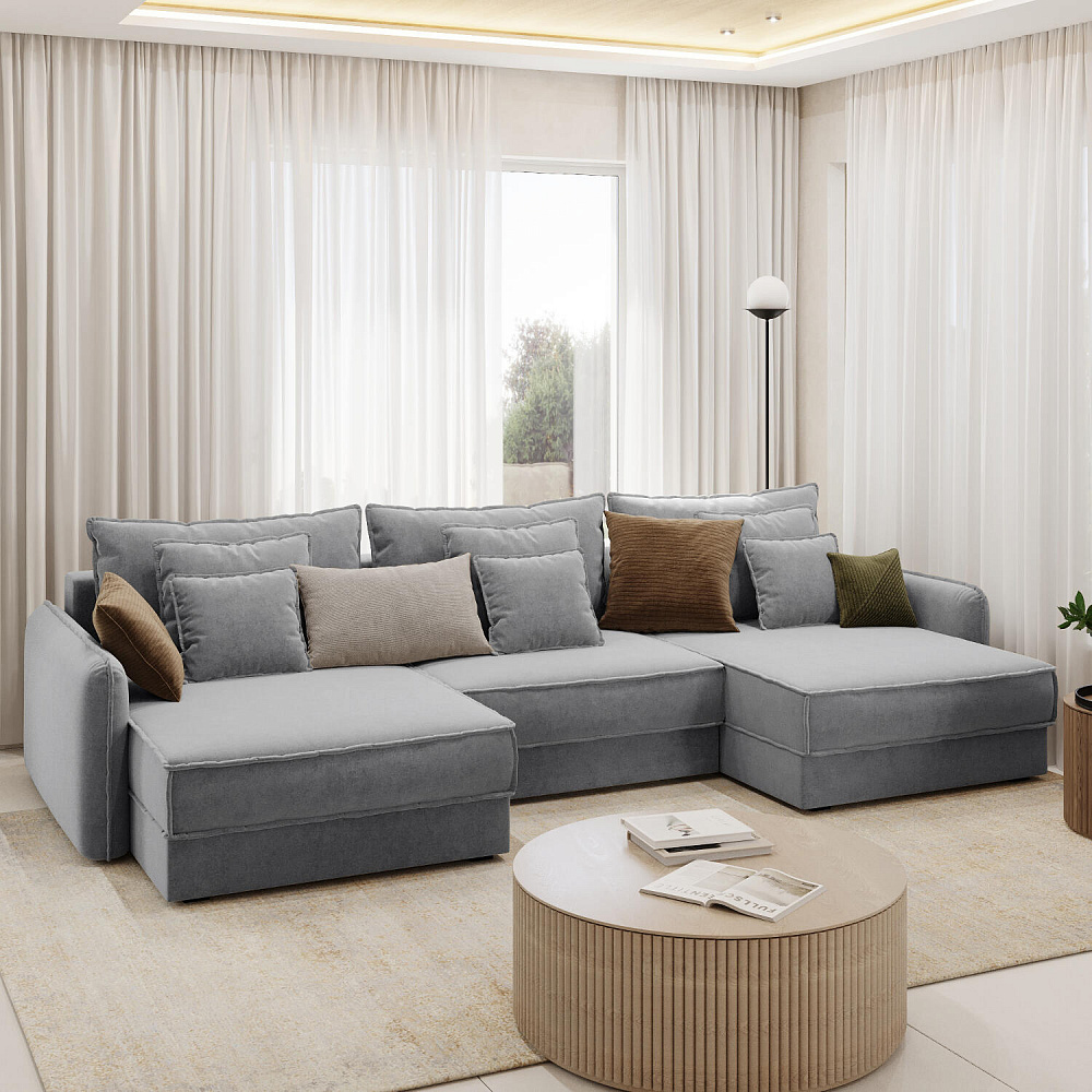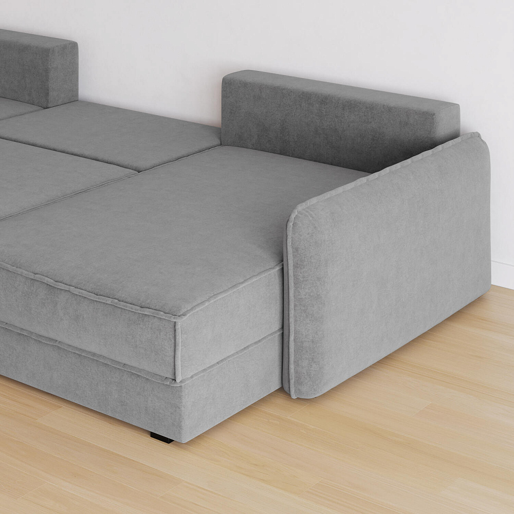- Размер спального места — 300 х 147 см. Диван легко трансформируется в полноценное спальное место для сна и отдыха двух человек.