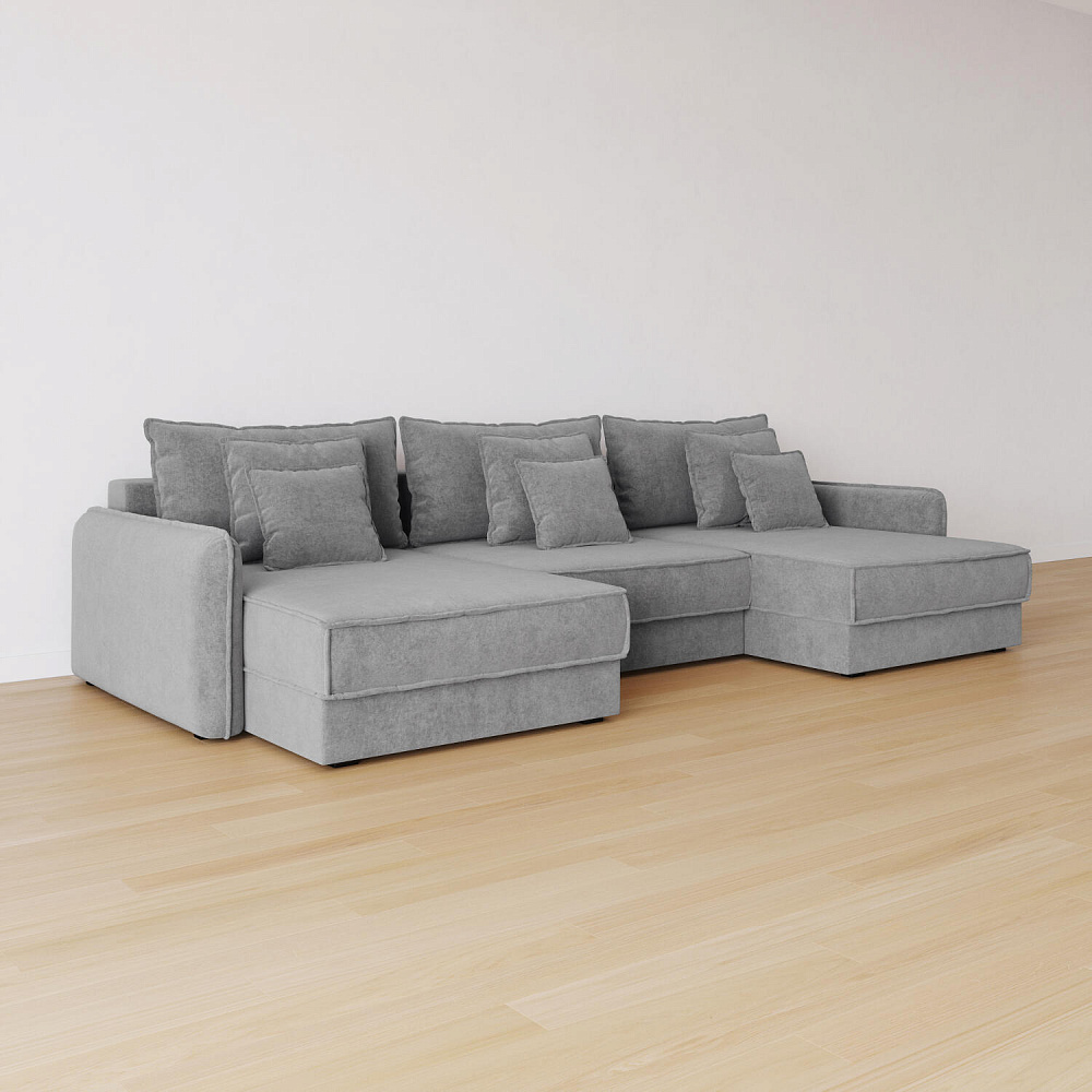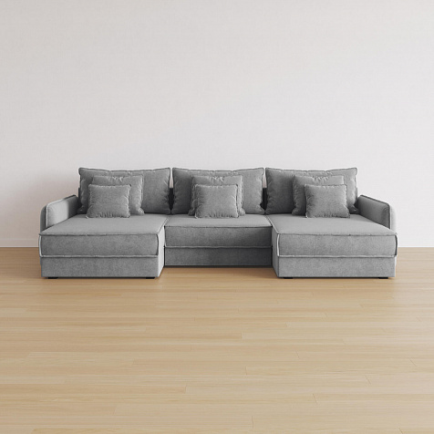- 9 подушек в комплекте. 3 приспинных и 6 декоративных подушек разных размеров позволят скорректировать глубину посадки.
