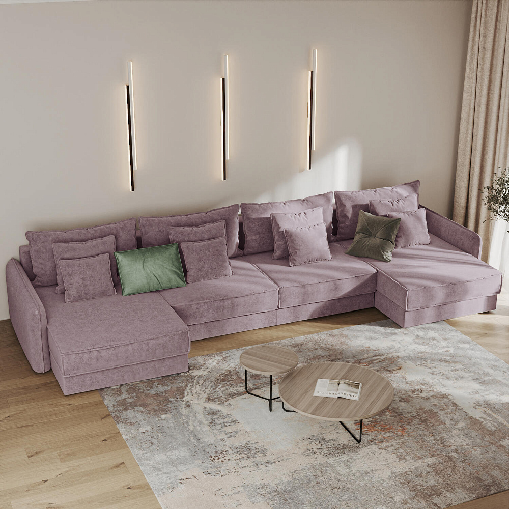- 12 подушек в комплекте. 4 приспинных и 8 декоративных подушек разных размеров позволят скорректировать глубину посадки.