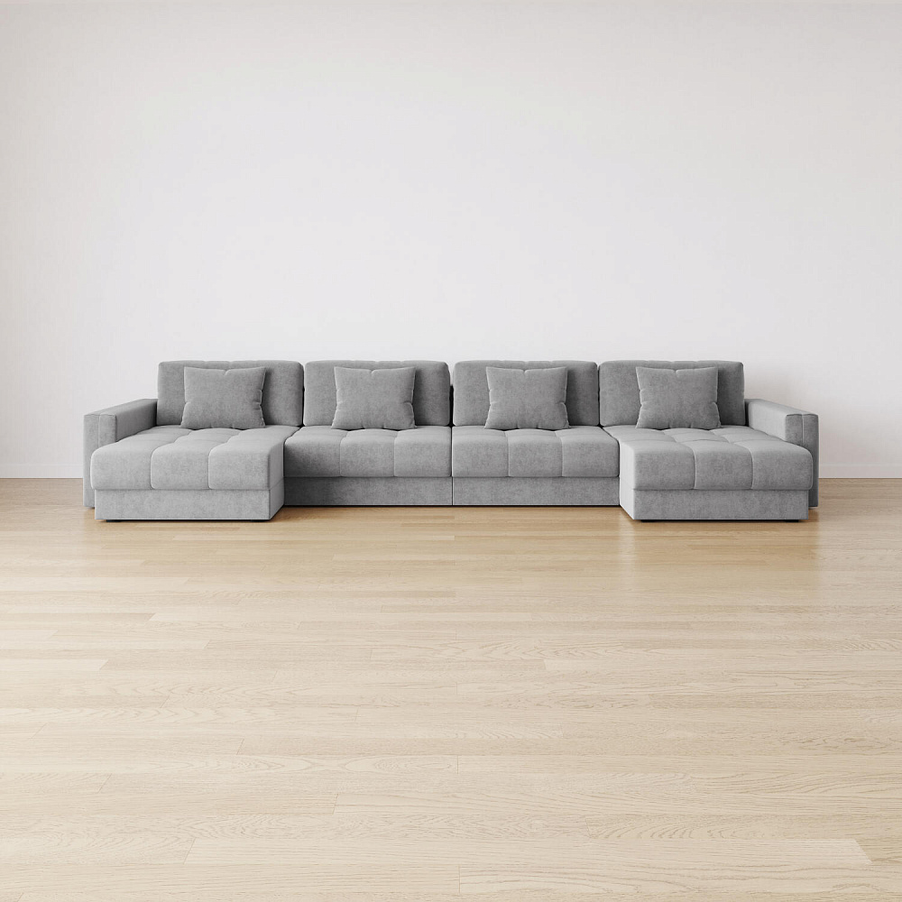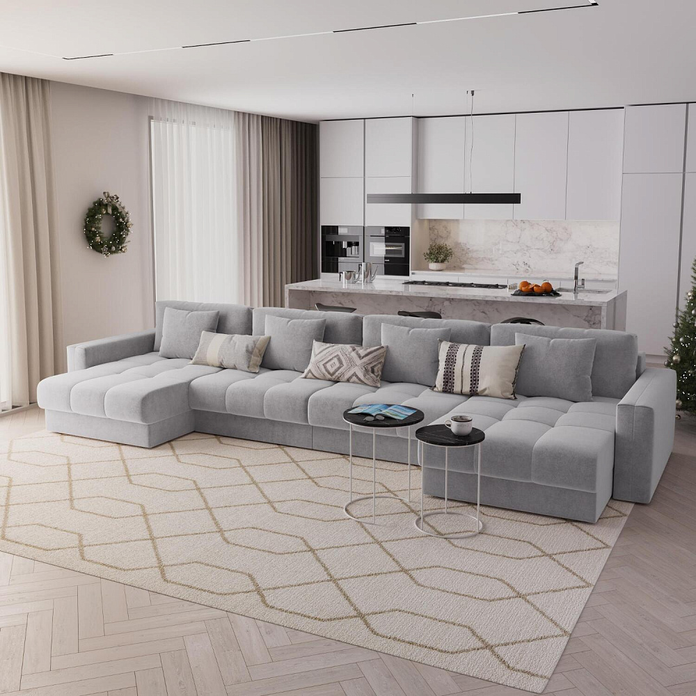 П-образный угловой диван «Дензел» — лучший вариант для ценителей комфорта и удобства в сочетании со стильным дизайном. Диван обладает глубокой посадкой, а приспинные и декоративные подушки позволят создать удобное место для отдыха. Угловая модель с двумя оттоманками займёт своё идеальное место в пространстве комнаты или студии. Спинка модели выполнена в обивочной ткани, что даёт возможность использовать диван для зонирования комнаты.