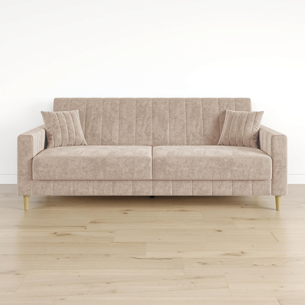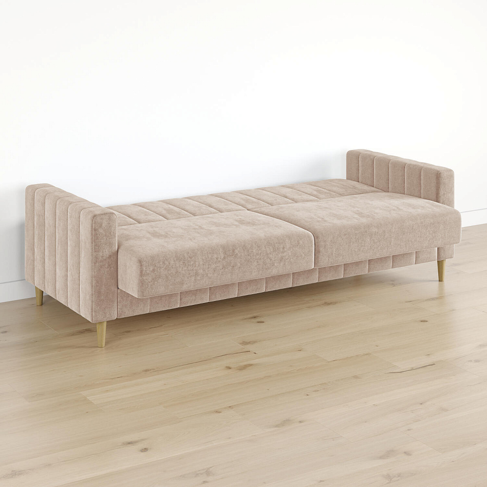 Механизм трансформации «Книжка». Чтобы разложить диван, нужно приподнять спинку и сиденье до щелчка и положить их вниз. Лучше ставить диван на расстоянии от стены, чтобы не двигать его при трансформации.
