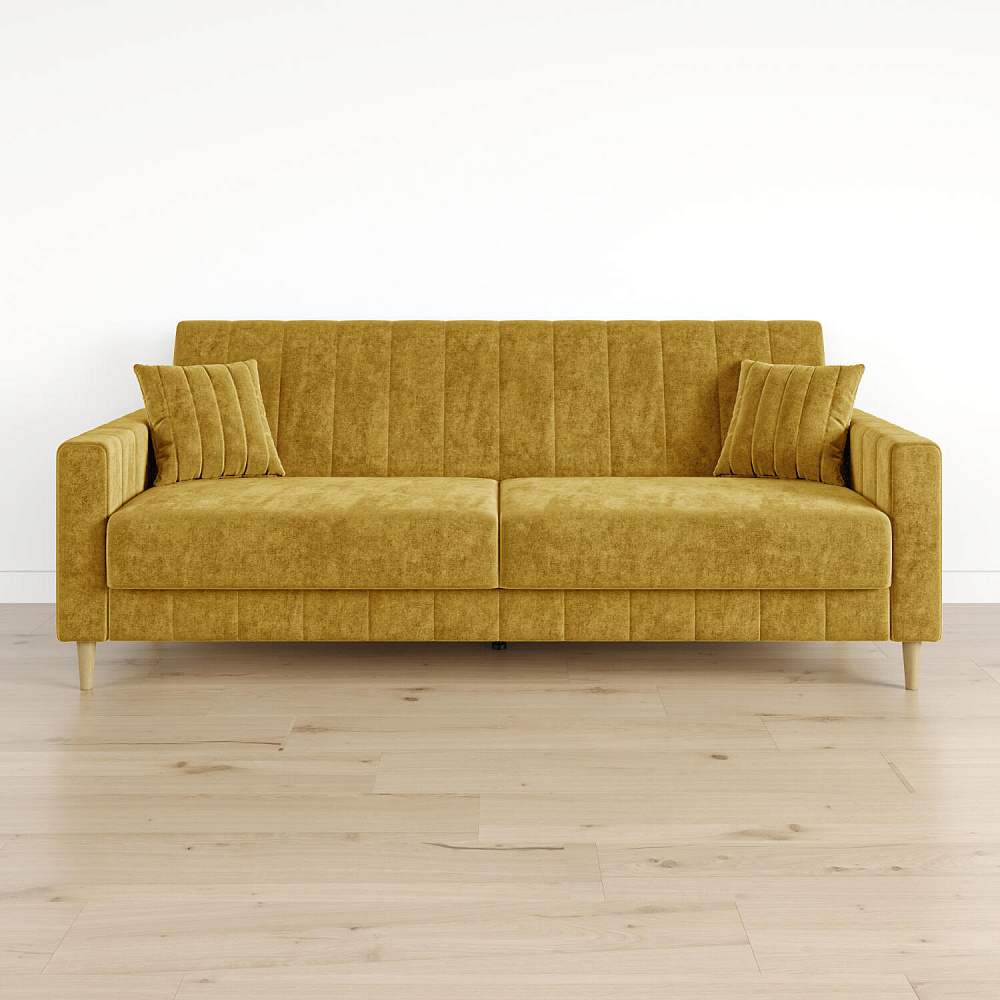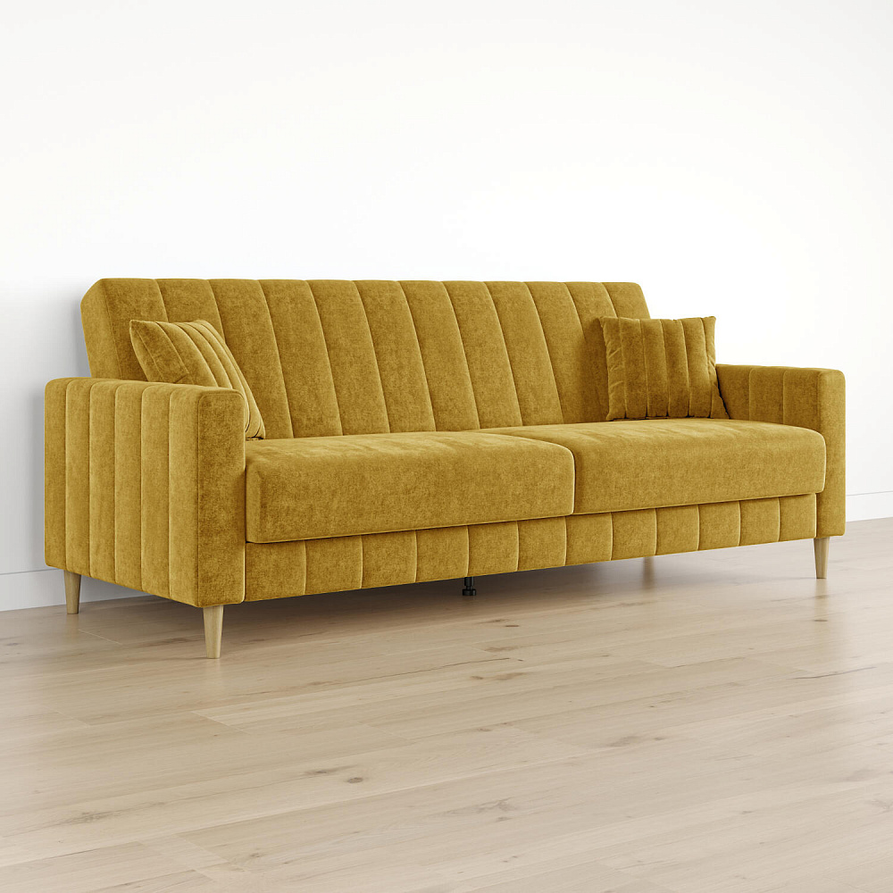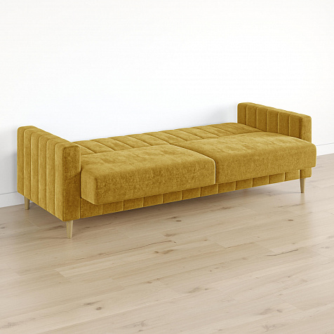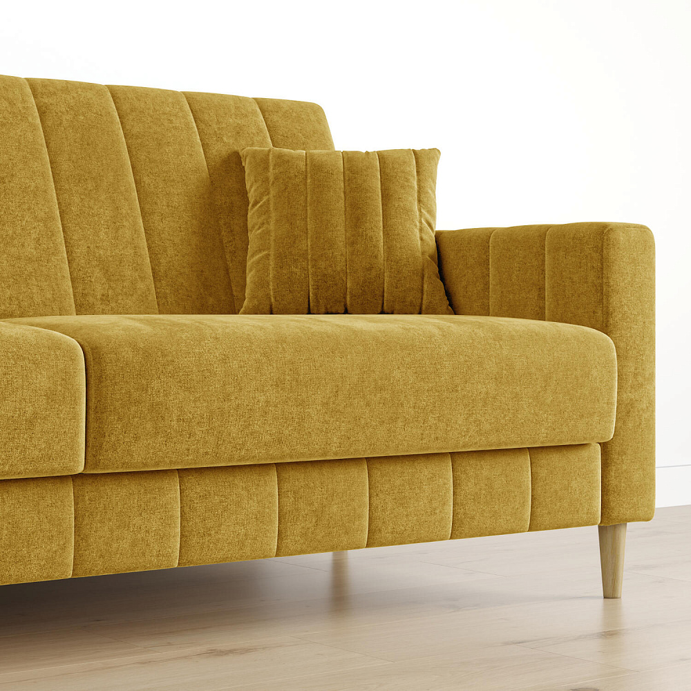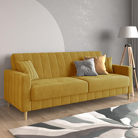 Диван «Бронкс» дополнит гостиную в современном или скандинавском стиле. Модель сочетает в себе минималистичный дизайн, спальное место и ящик для хранения. Задняя часть спинки выполнена в основной обивочной ткани, что дает возможность свободно размещать диван и зонировать комнату. Высокие опоры из натурального дерева создают легкий эффект невесомости и значительно облегчают процесс уборки.