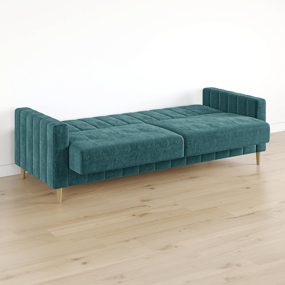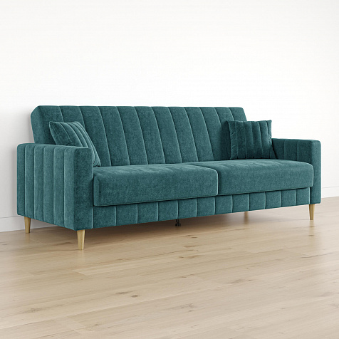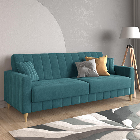 Диван «Бронкс» дополнит гостиную в современном или скандинавском стиле. Модель сочетает в себе минималистичный дизайн, спальное место и ящик для хранения. Задняя часть спинки выполнена в основной обивочной ткани, что дает возможность свободно размещать диван и зонировать комнату. Высокие опоры из натурального дерева создают легкий эффект невесомости и значительно облегчают процесс уборки.