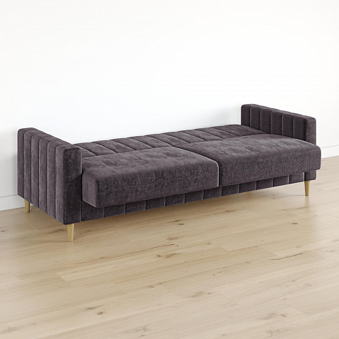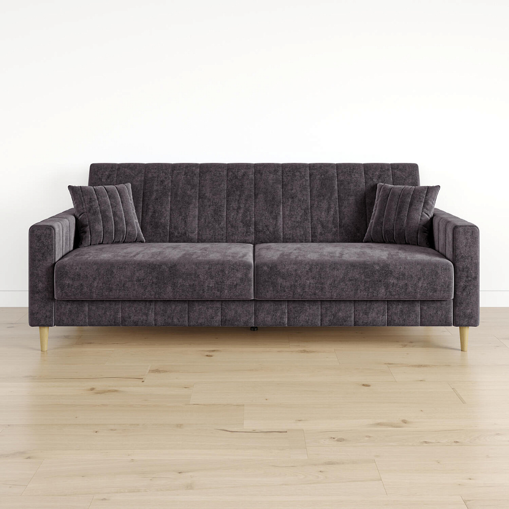 Механизм трансформации «Книжка». Чтобы разложить диван, нужно приподнять спинку и сиденье до щелчка и положить их вниз. Лучше ставить диван на расстоянии от стены, чтобы не двигать его при трансформации.