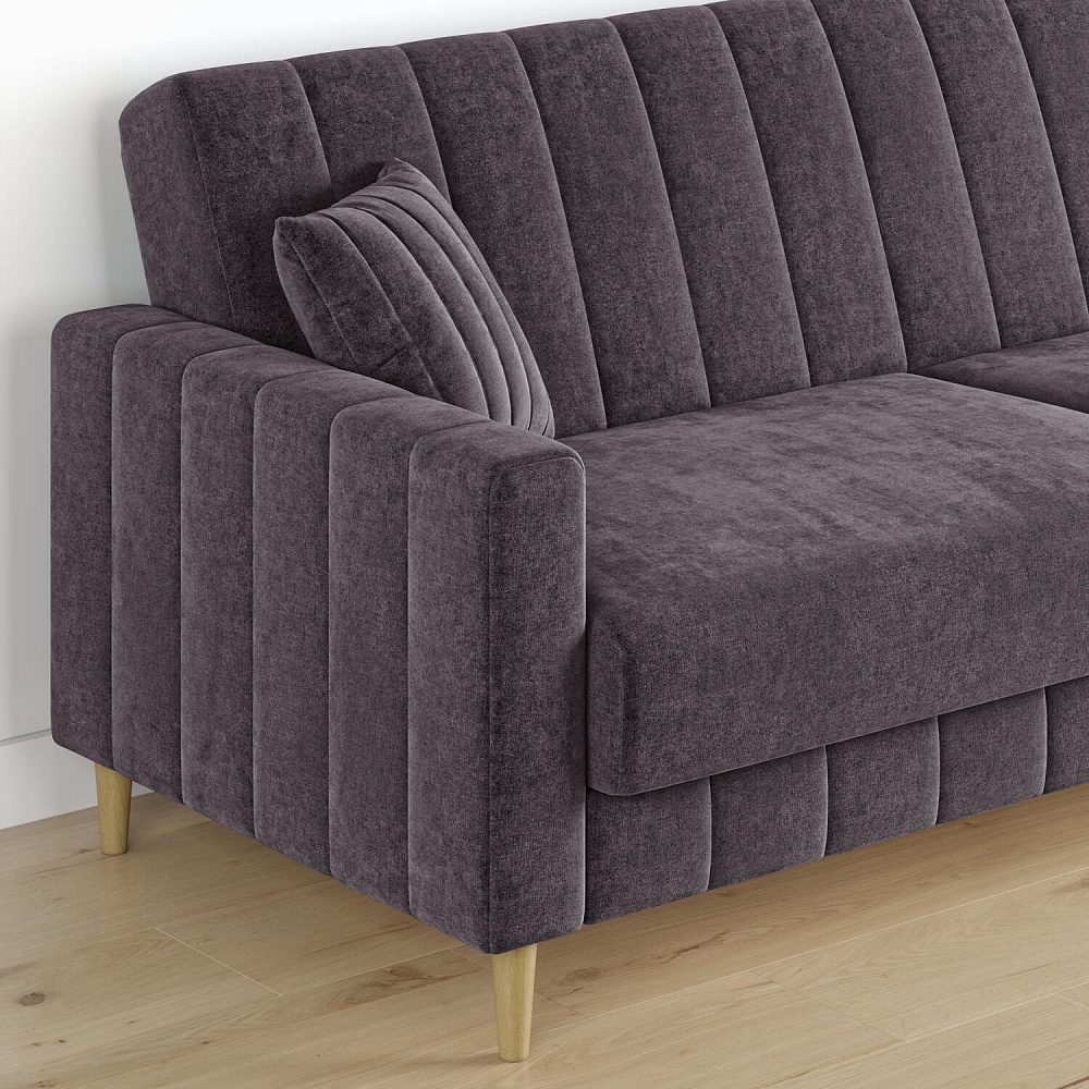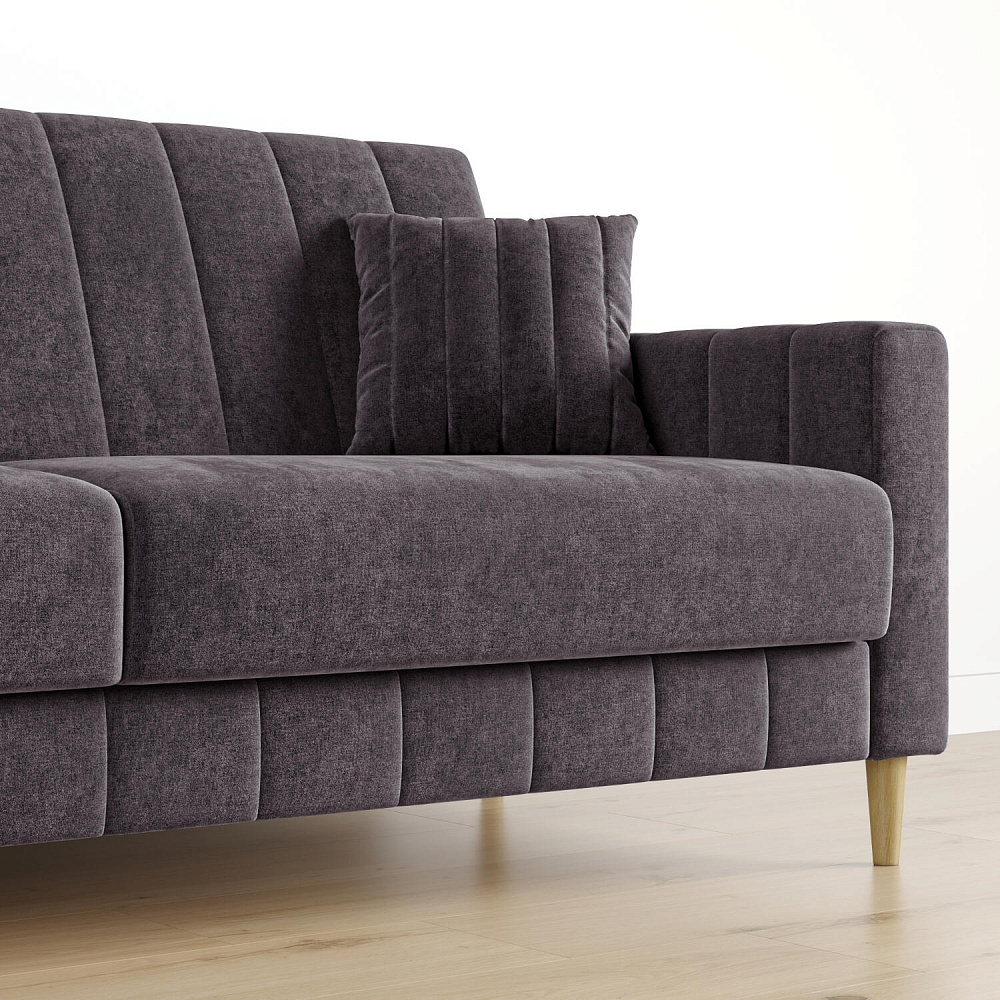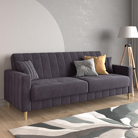 Диван «Бронкс» дополнит гостиную в современном или скандинавском стиле. Модель сочетает в себе минималистичный дизайн, спальное место и ящик для хранения. Задняя часть спинки выполнена в основной обивочной ткани, что дает возможность свободно размещать диван и зонировать комнату. Высокие опоры из натурального дерева создают легкий эффект невесомости и значительно облегчают процесс уборки.