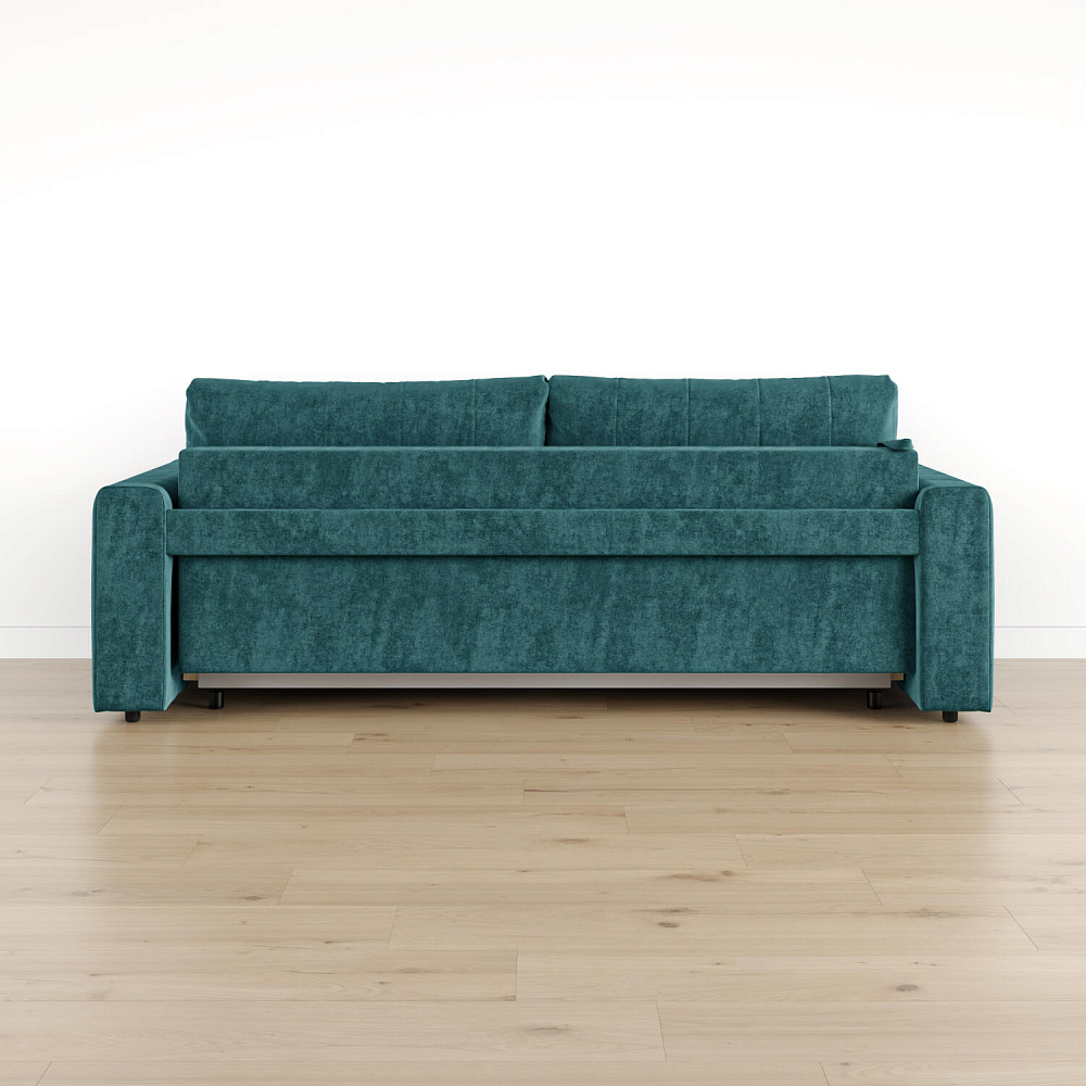 Обратная сторона спинки в обивочной ткани. Диван можно поставить вплотную к стене или посреди комнаты для зонирования пространства.