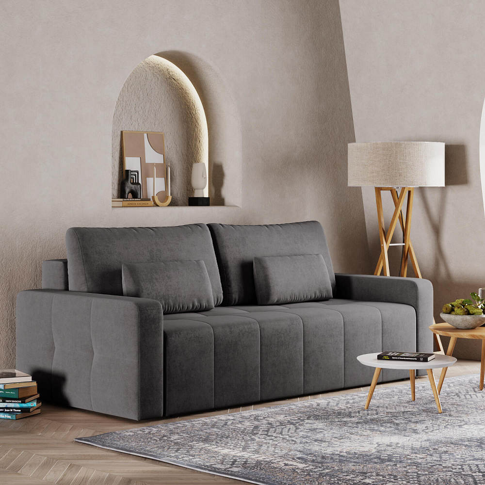 Диван «Тормес» — это находка для современной гостиной или стильной студии. Механизм трансформации «Еврокнижка» в сложенном виде позволяет сэкономить пространство в комнате, в разложенном — обеспечивает комфортное и ровное спальное место. Благодаря независимому пружинному блоку и высокопрочной пене, модель идеально подойдет для ежедневного сна. Спинка выполнена в обивочной ткани, поэтому диван можно расположить в центре помещения и зонировать пространство по своему вкусу.