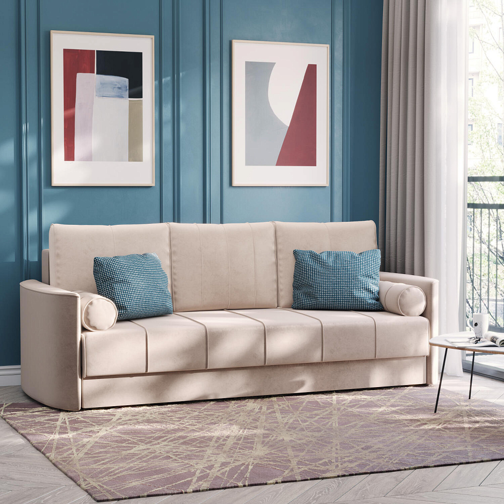 Диван «Амми» — это идеальное сочетание надёжности, простоты и комфорта. Прямая строчка на сиденье и приспинных подушках создает завершённый образ и придает модели мягкую геометричность. Механизм «Еврокнижка» в сложенном виде поможет сэкономить пространство в комнате и использовать диван для ежедневного сна. Благодаря универсальному дизайну, качественным материалам и эргономичности диван станет главным местом гостиной в современном стиле, сканди или лофт.