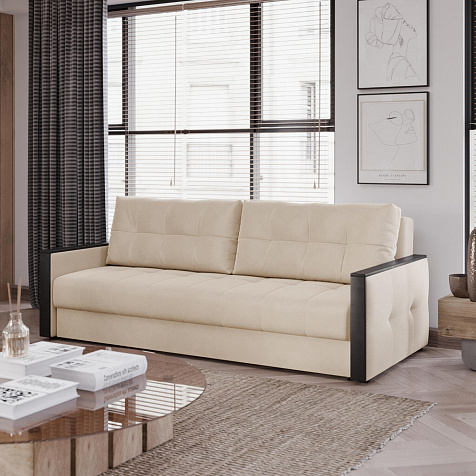 Диван «Винг» объединяет строгие геометрические формы и мягкую воздушность. Механизм трансформации «Еврокнижка» в сложенном виде позволяет сэкономить пространство в комнате, в разложенном - обеспечивает комфортное и ровное спальное место. Спинка дивана выполнена в той же обивке, что и основная часть, что даёт возможность использовать диван для зонирования комнаты. Горизонтальную поверхность на подлокотниках можно использовать в качестве мини-столешницы для небольших предметов.