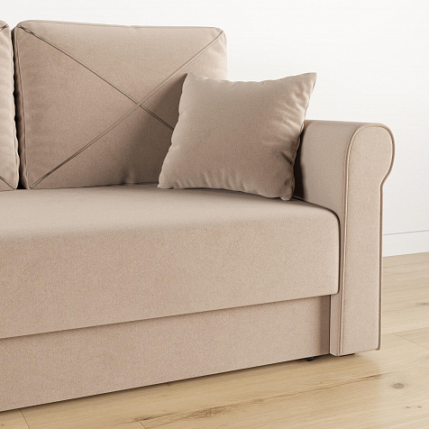 - Обивка из велюра. Диван выполнен в приятной на ощупь ткани, которая пропускает воздух, тянется и устойчива к истиранию.