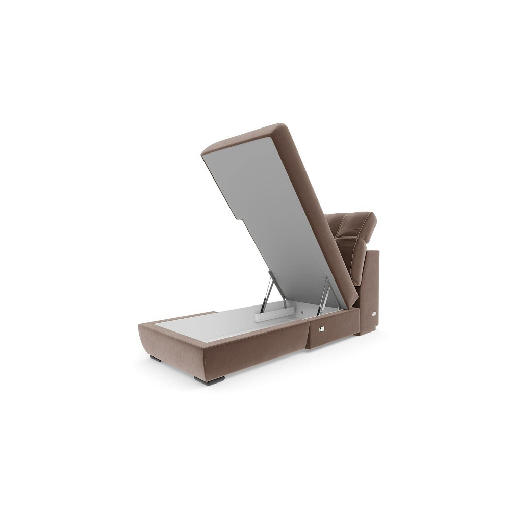 Оттоманка модульного дивана «Бруно» имеет вместительный короб для хранения вещей. Доступ к коробу обеспечивает надежный механизм с которым справиться даже ребенок.