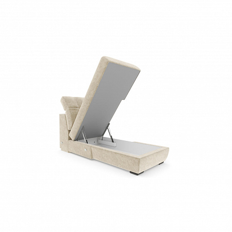 Оттоманка модульного дивана «Бруно» имеет вместительный короб для хранения вещей. Доступ к коробу обеспечивает надежный механизм с которым справиться даже ребенок.