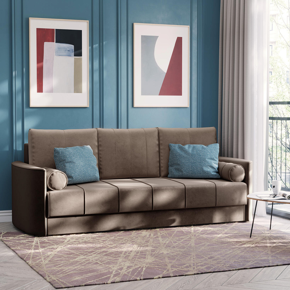 Диван «Амми» — это идеальное сочетание надёжности, простоты и комфорта. Прямая строчка на сиденье и приспинных подушках создает завершённый образ и придает модели мягкую геометричность. Механизм «Еврокнижка» в сложенном виде поможет сэкономить пространство в комнате и использовать диван для ежедневного сна. Благодаря универсальному дизайну, качественным материалам и эргономичности диван станет главным местом гостиной в современном стиле, сканди или лофт.