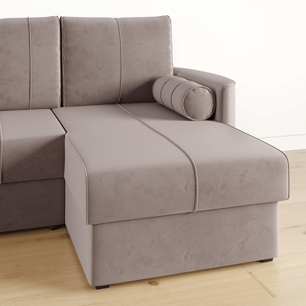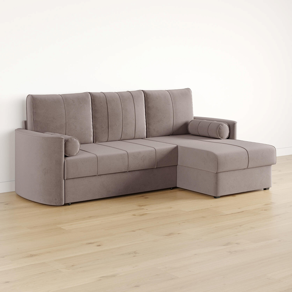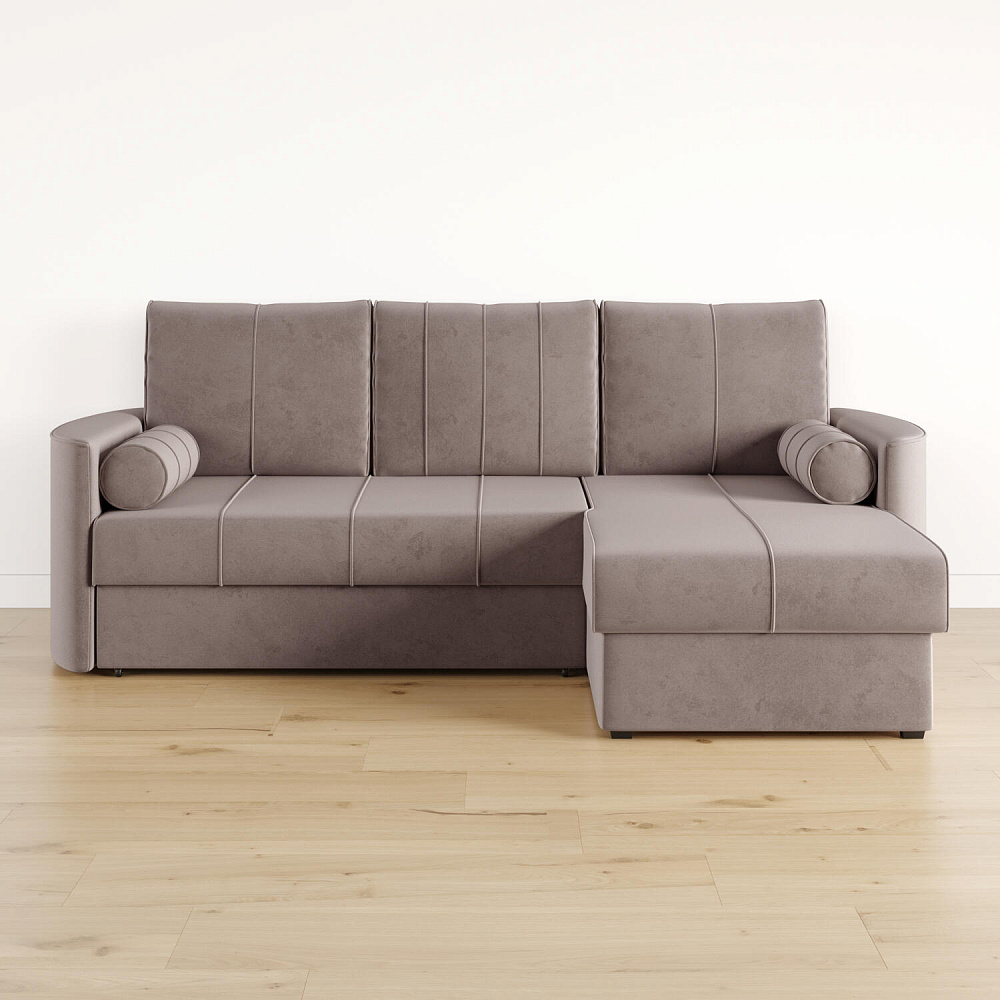 Угловой диван «Амми» — это идеальное сочетание надёжности, простоты и комфорта. Прямая строчка на сиденье и приспинных подушках создает завершённый образ и придает модели мягкую геометричность. Механизм «Дельфин» в сложенном виде поможет сэкономить пространство в комнате и использовать диван для ежедневного сна. Благодаря универсальному дизайну, качественным материалам и эргономичности диван станет главным местом гостиной в современном стиле, сканди или лофт.