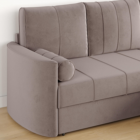 - Обивка из велюра. Обивка дивана выполнена из мягкой и приятной на ощупь ткани, которая пропускает воздух, тянется, устойчива к истиранию и выцветанию.