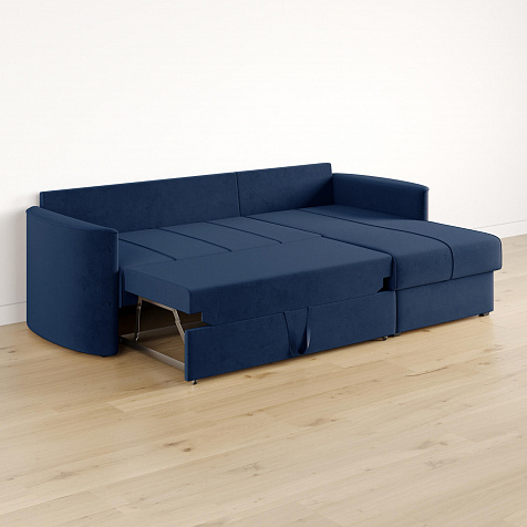 - Механизм трансформации «Дельфин». Диван легко раскладывается — достаточно выдвинуть раму с дополнительным спальным местом из-под более широкой части дивана и потянуть вверх и вперёд за специальную петлю.
