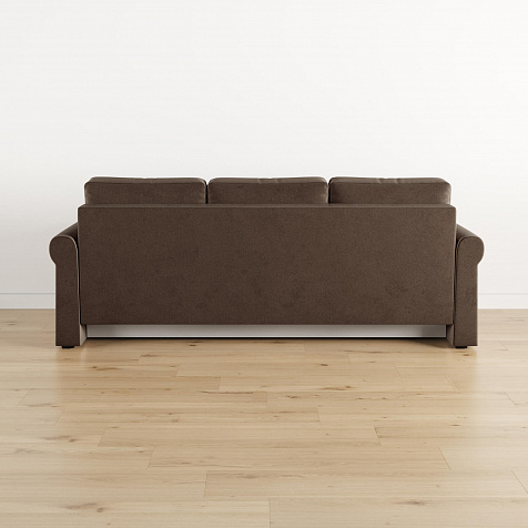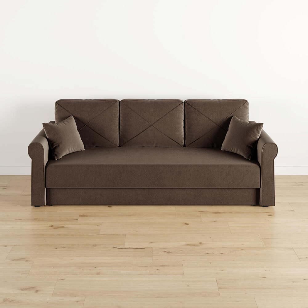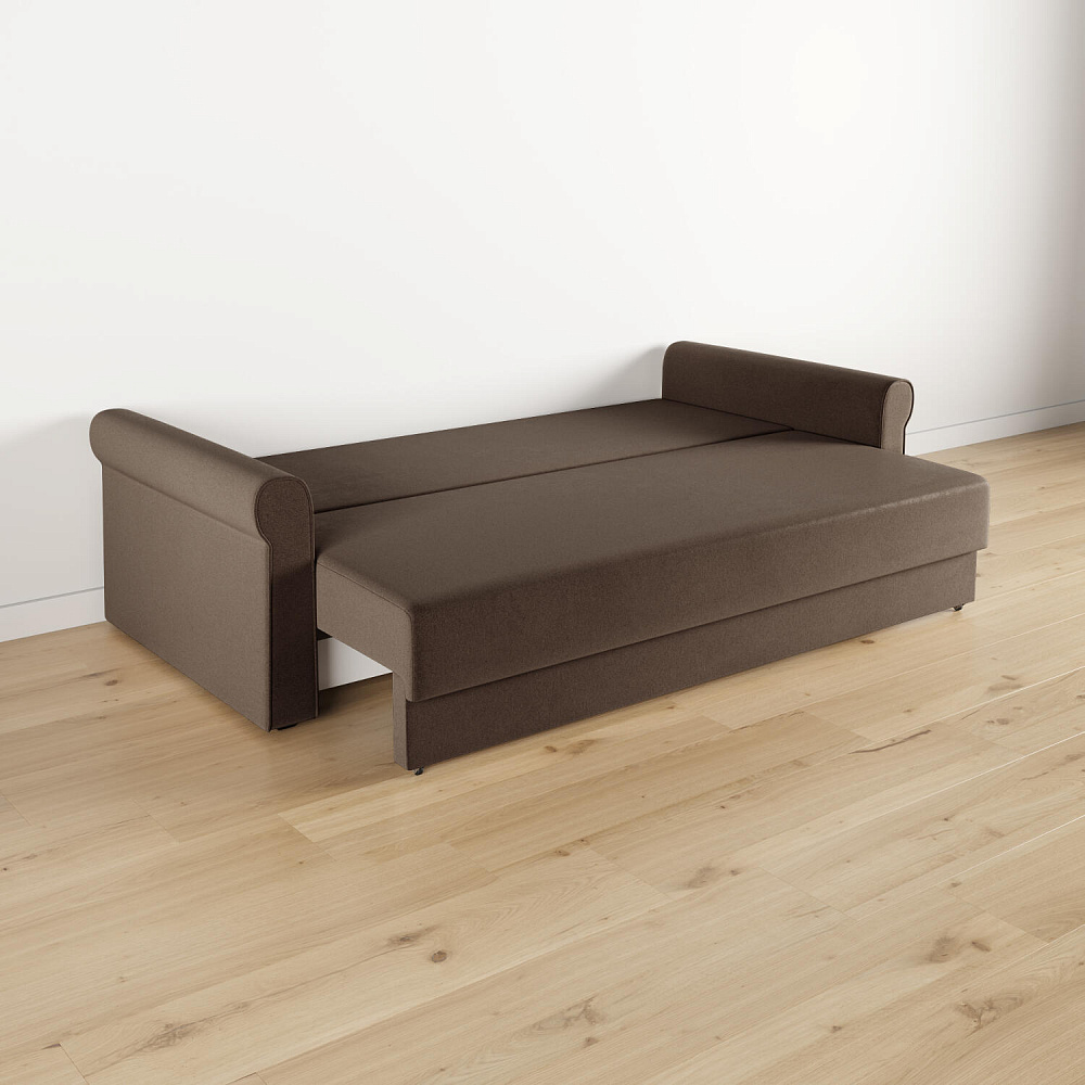 - Механизм трансформации «Еврокнижка». Диван легко раскладывается — достаточно выкатить вперёд сиденье и опустить спинку. Отодвигать диван от стены не требуется.