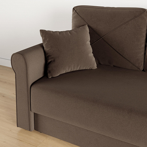 - Обивка из велюра. Диван выполнен в приятной на ощупь ткани, которая пропускает воздух, тянется и устойчива к истиранию.
