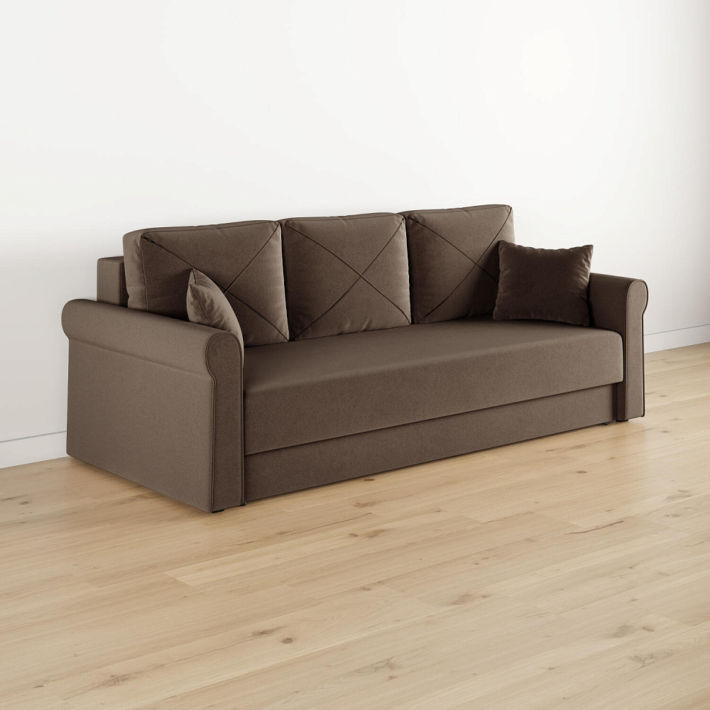Диван «Имола» поможет создать комфортную зону отдыха в современной гостиной. Аккуратная строчка на приспиных подушках в комбинации с закруглённой формой подлокотников формирует элегантный, но при этом сдержанный образ. Механизм «Еврокнижка» в сложенном виде поможет сэкономить пространство в комнате и использовать диван для ежедневного сна. Спинка дивана выполнена в обивочной ткани, что идеально подходит для зонирования комнаты.